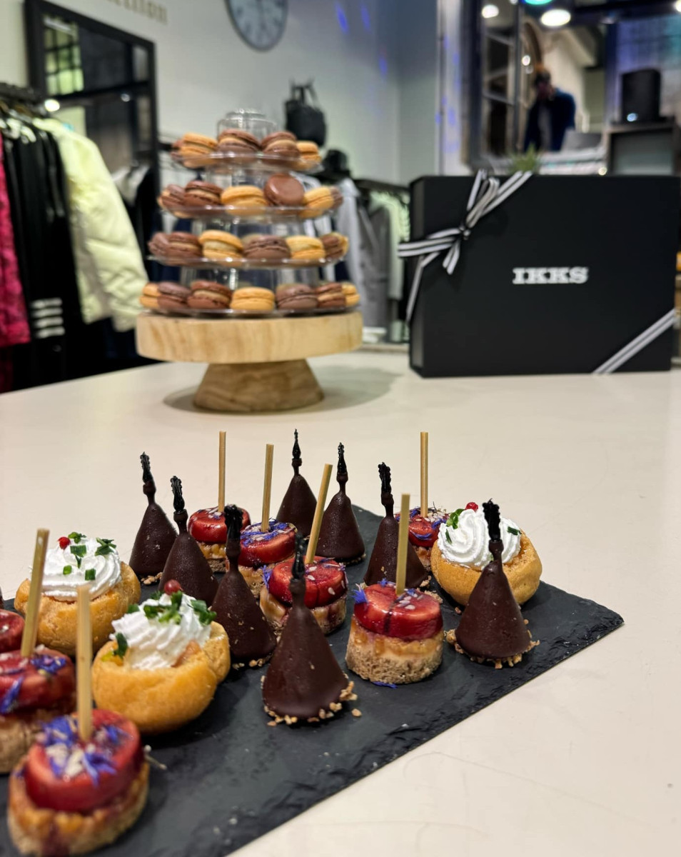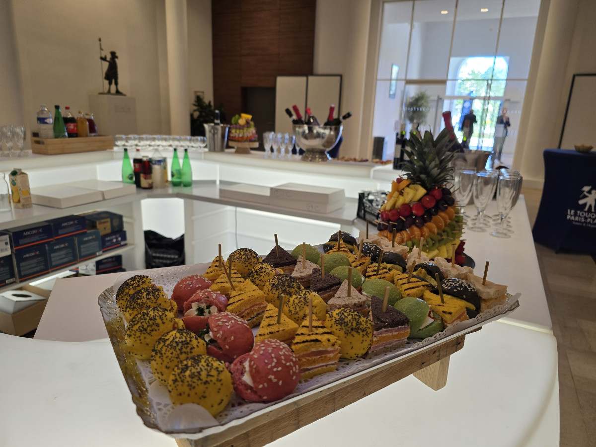 Cocktails déjeunatoires ou dînatoires : Une formule plus complète, avec un assortiment généreux de bouchées salées et sucrées, permettant un repas debout convivial et dynamique. Ces évènements sont parfaits pour des événements de plus longue durée.